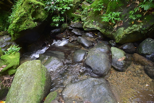 過小支流,過後路況轉平緩,且開始遠離溪流。不久出現古老石階,已屬茄苳古道支線範圍。H382m |