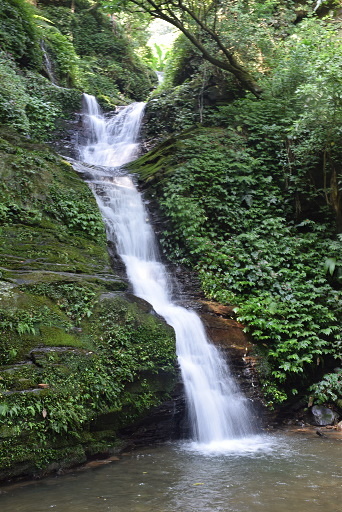 茄苳瀑布,平易近人,步道從旁經過,且離步道入口不遠,過於平易近人也算是缺點,一大早就有遊客流連。H217m |