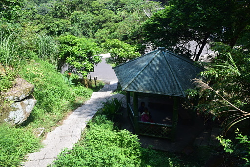 茄苳瀑布步道入口,有座綠頂涼亭,路旁停車方便,指標往四分尾山3.1K。休息整裝。H207m |