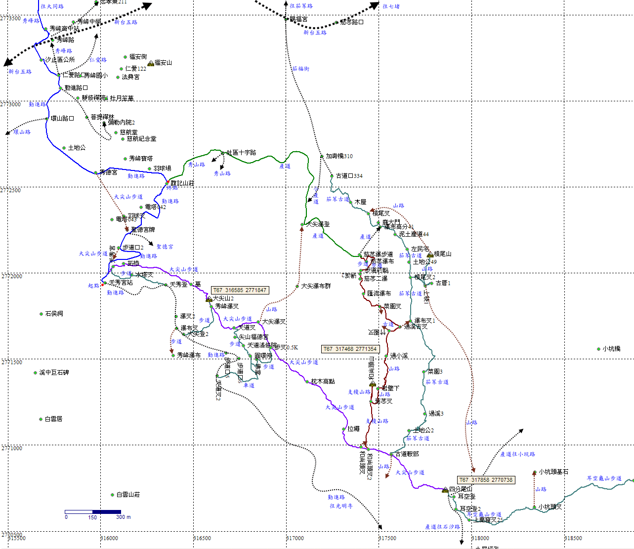 天秀宮站,下車回走至天秀宮起登。H233m |