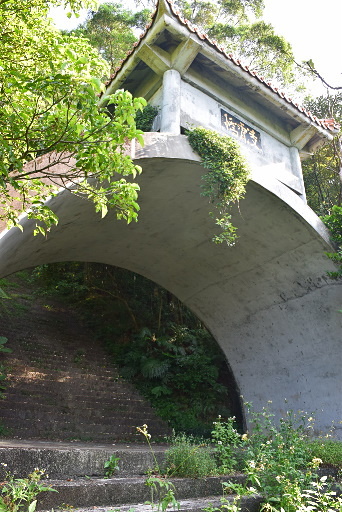 凌霄橋,圓拱造型的牌樓,另一端標示天池。續行仍有環湖路,或可下往湳窟民宅,取左循牌樓階梯直上稜線。H344m |