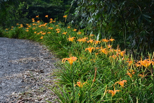 串空湖古道中段出口,產道旁有很多水塔,附近金針花盛開。續行產道往下。H209m |