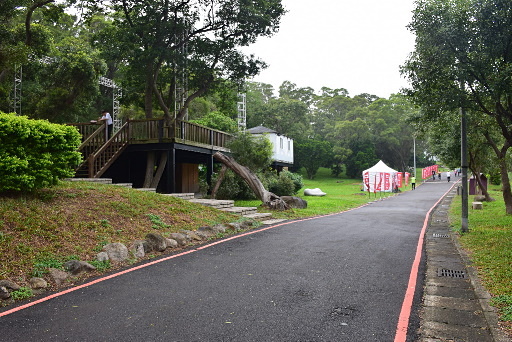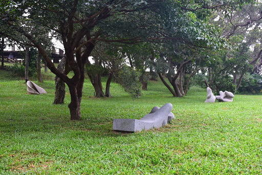 北藝大雕塑公園,草地上散落一些雕塑作品,綠草如茵,風景優美。參觀完之後進入石階步道往上。H119m |