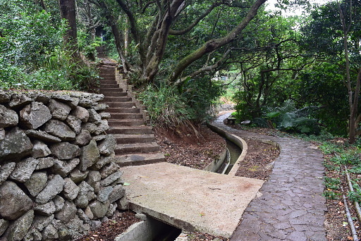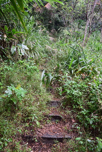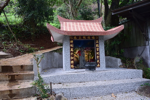 三慈宮,續行往小坪頂山的步道在一座新建的福德敕三慈的小土地公廟旁。這條水泥階梯步道雜草叢生,有點冷門了。H290m |