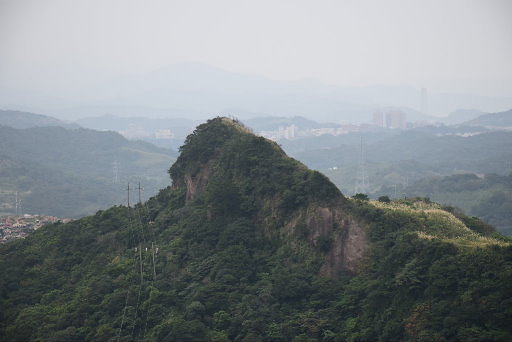 白象山(弘明山),約180m,無基石。因山腰有弘明寺而被Paul Lee兄暫名為弘明山,經查弘明寺有碑銘記載:弘明寺位於瑞芳近郊白象山南麓,主山崔嵬狀似茁壯白象,故號白象山。山頂南側為懸崖,疏生芒草,展望頗佳,可遠眺基隆。回程在岩壁旁陡坡處發現頗難下腳,最好在此處架繩確保。H182m |