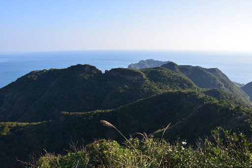 斷稜山頭,左行約十幾公尺為最前端展望點,這個點緊鄰懸崖,令人腳軟,我不敢太靠近。展望極佳,可鳥瞰濱海公路往鼻頭山、南雅,亦可眺望南子吝山、基隆山、石梯坑山稜、半平山。這裡遠眺半平山的劍龍稜、鋸齒稜,距離適中、角度絕佳。H182m |