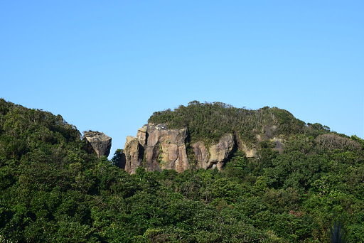 海園古道叉路,位於小山頭,左往台2-83.9K(即海園古道入口)、鼻頭社區,右往鼻頭國小、鼻頭隧道口,取左離開鼻頭山稜。這條稜線山路也是Paul Lee兄所開發,設有精美路線圖,可惜有部分線條已日久消失。稜線山路路況不錯,展望亦佳,可眺望南雅山奇岩、半平山,我好像看到一隻河馬。偶然往右下看,居然可以瞧見海園古道。H190m |