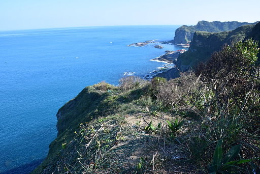 下層展望點,突稜往前約十公尺,前段藤蔓鋪地,無法踏實,但還算安全,再往前我覺得有點危險,還是省略吧。這裡可鳥瞰濱海公路往鼻頭角方向。H98m |