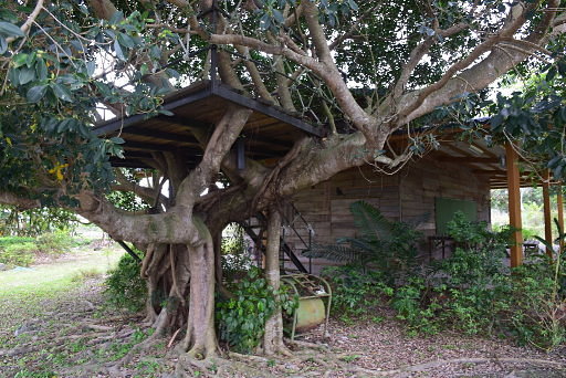 豐田繪本館,位於壽豐鄉豐裡村和平街,位置隱密,如果不是看到門前的樹屋平台,很難發現。 |