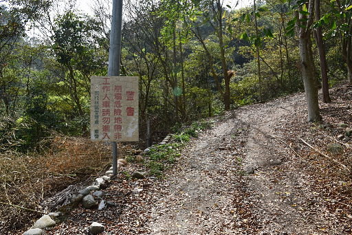 九峰山莊,續行的產道有南投林區管理處的警告牌,崩塌危險地帶非工作人車請勿進入。不久產道上稜,大致上循稜而行。H475m |