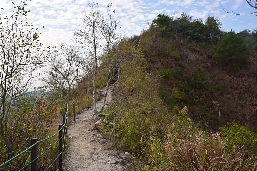 回到九峰山莊後方水塔叉路,右上略為荒廢的產道通往另一山頭,上行看風景。H508m |