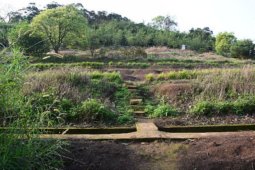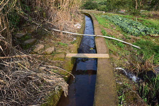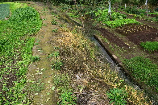 中層水圳,亦有木板橋,穿越續往上,進入大片農地後,先往右靠近農地中的水管,再循此水管路往高處的水塔靠近。H61m |