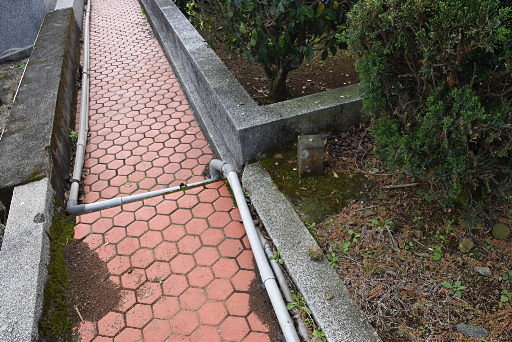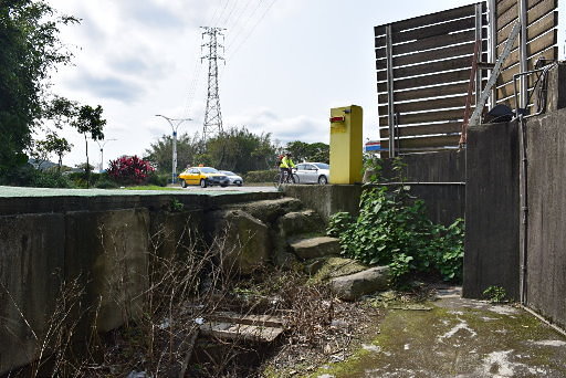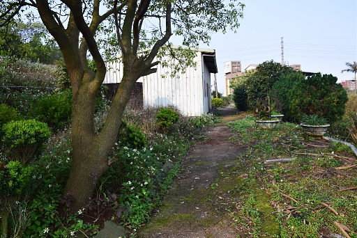 樹林口26號民宅,山路從屋旁棚架繞出,這家養了好幾隻狗,其中一隻剛好綁在出口處,小心警戒而出。出來之後接上埔尾的小車道,左往鄧公路(北4)埔尾站,右往保安林步道,因為滬尾櫻花大道花期已過,決定逕取右繞回虎頭山。沿途直行至路底。H173m |