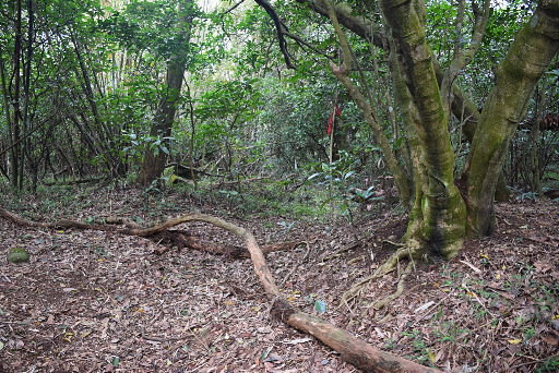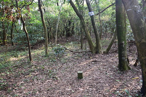 竹園內高高的保安林界柱,叉路,左側竹園邊樹林發現登山路條,取左。很快即進入樹林,路況還不錯。H145m |