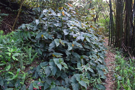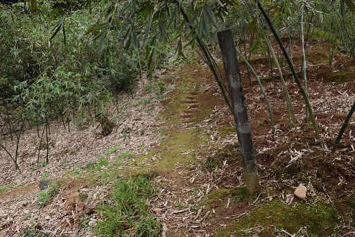 離開山腰路,往左略陡下。接近登山口時遇竹園,右繞其外圍往下。H115m |
