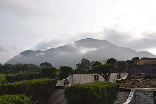 墓園車道叉路,左為水泥車道往墓園入口,可接北投子路,右側較破碎的水泥車道上往興華坑山,擋土牆上有登山指標,往興華坑山約5分,回往虎頭山約70-90分。取右登頂再回。墓園高處展望頗佳,可眺望向天山、觀音山。H266m |