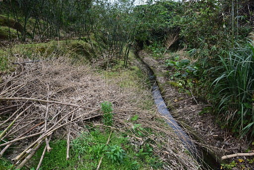 竹園旁水圳,為虎頭山北側山腰三條水圳道中的下層水圳,取右循水圳道往下游。H57m |