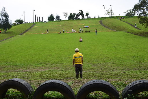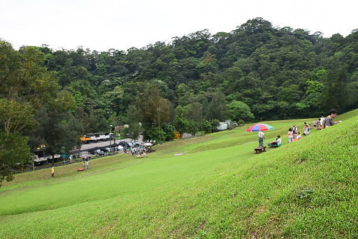 福德坑公園滑草場,免費使用滑草設備,有專人管理,並嚴禁私帶滑草設備到處亂滑。滑草場就在園區最低的垃圾車停車場旁,續行循車道下往深坑。H88m |