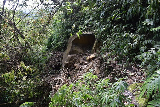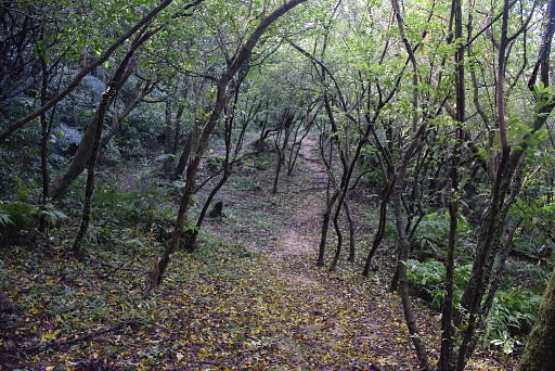 續行,循紙寮坑古道出大溪墘,路況比上回差些,倒竹、倒木、崩塌處多。 |