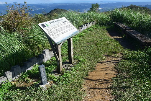 四分尾山(茄苳腳山、四分子尾山),641m,二等三角點No.1060、三等三角點八三七號。山頂展望雖佳,且設有木椅,可惜無遮蔽,無法久待。這回發現山友小草兄在此立了一塊山頂標示碑。H636m |