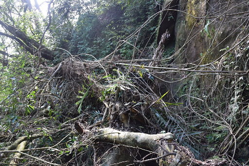 岩壁倒樹,盤根錯節阻路,翻越不難。H278m |