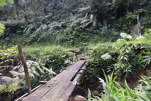 陳宅叉路,有木橋,右往陳宅,設有鐵欄,取左,此後古道路況轉佳。H237m |