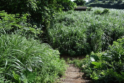 無言的山丘,電影場景,該電影刻劃日治時期台灣人過著屈辱生活,1992年上映,導演王童。殘存石牆與兩根門柱於芒草區中。H164m |