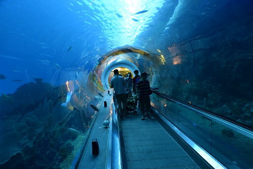 世界水域館,包含古代水域、海藻森林、深海水域、極地水域等展覽區。 |