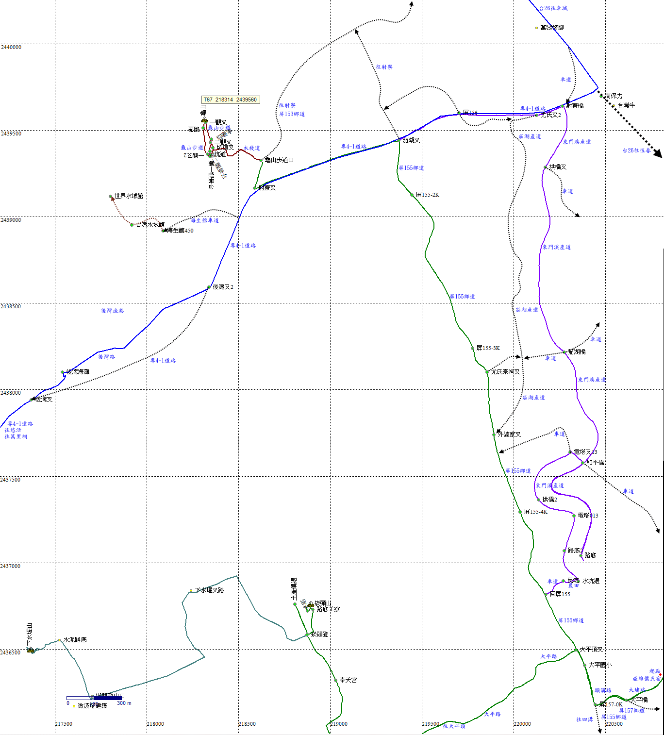 高鐵左營站,租車後出發,經國道十號、國道一號、台88、國道三號(南州交流道)、台1、台26往車城。 |