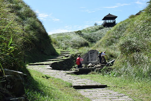 涼亭,設有公廁,抵達前路左有古厝殘牆。接近越嶺鞍部前開始出現芒草景觀,芒花季節遊客如織,今日有點冷清。H268m |