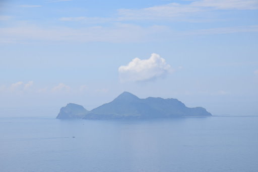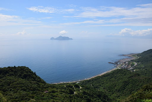草嶺古道埡口,直行往大里火車站2.8公里,右上往桃源谷4.5公里。鞍部有座古老的石砌土地公廟,福德祠,現再加蓋成涼亭。登上高處的涼亭休息觀景。這時節沒有芒花可賞,但今天天氣真不錯,除了龜山島清晰可見,天空還有鷹群紛飛。H335m |