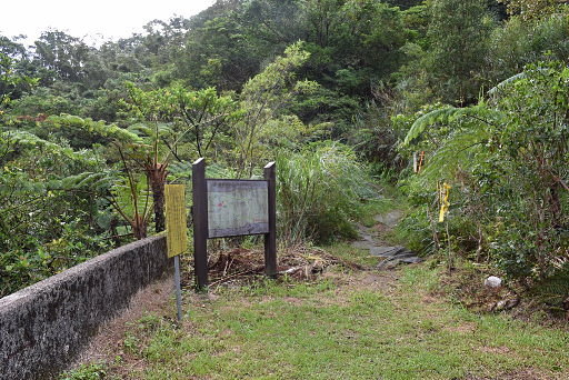 灰窯瀑布步道入口,慶和高分42電線桿,步道陡下到溪邊賞瀑。 |