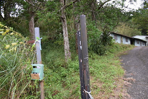 石硿子古道出口,位於內盤山坑10號民宅門口內側,以前有鐵門,現已無障礙。休息整裝。H256m |