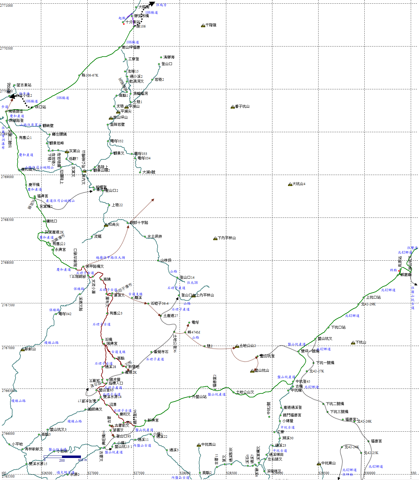 圳口站,前方即是莫內咖啡,取左進入慶和產道往灰窯。H189m |