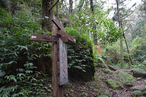 石燭尖叉路,直行較大條的步道往石燭尖約30分,左側老舊的階梯往慈母嶺約45分。取左,再度陡上。H225m |