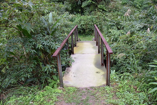礦坑遺址,設有木椅可休息。稍後過小水泥橋,小段陡上。H275m |