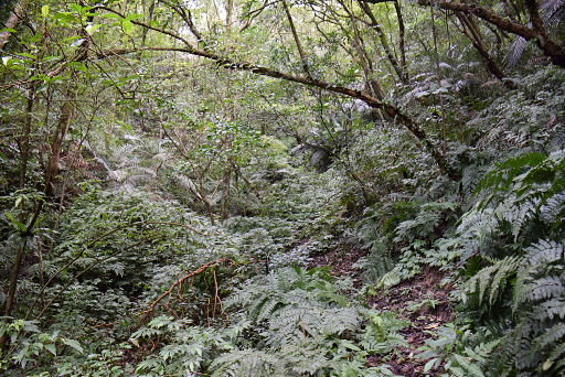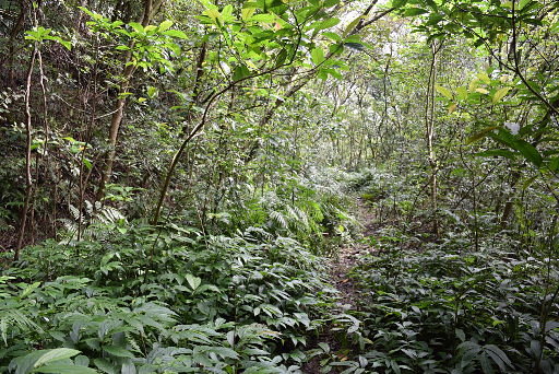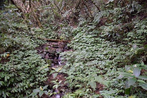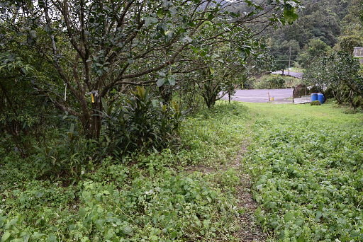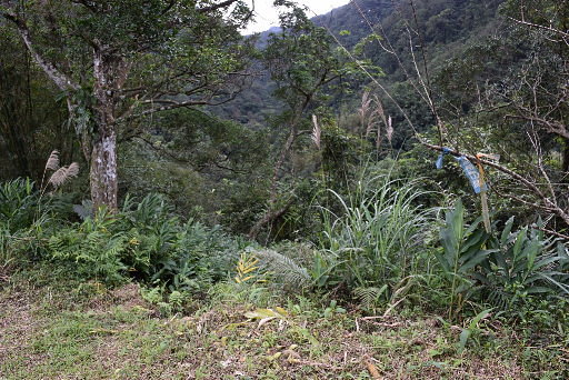 續行,過民宅攔路鐵鍊後往右走農地邊緣緩上。這條古道較冷門,雜草叢生,且登山路條不多,大致上循谷線緩上。 |