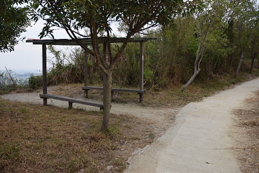 木桌休息區,原本的三等三角點就在附近,早已被剷除。續行偏右繞過一棵榕樹,循稜而行。H172m |