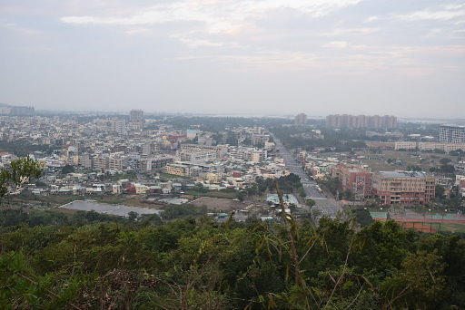 叉路,稜右小徑來會,續循稜而下。稍後有處小平台展望極佳,可俯瞰高鐵左營站、眺望半屏山北峰。H121m |
