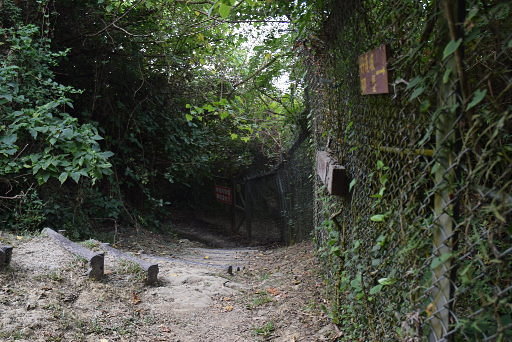 碉堡東側出口,發現通往半屏山北峰的山路已荒廢,看不出該往哪裡走?退回碉堡內,發現有往北的叉路可見亮光,進入後再分岔,分別往兩處出口。續行無路,只能退回。H102m |
