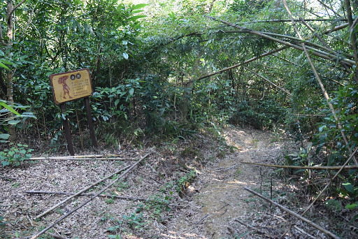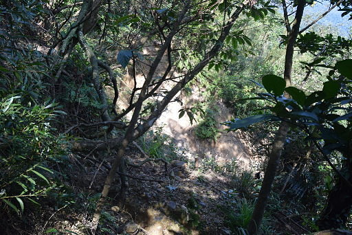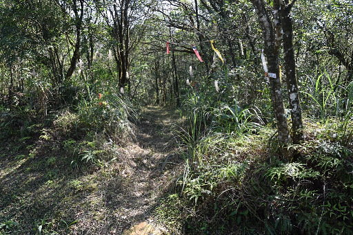 象寮古道叉路,直行往太和山步道、石坑山、石空古道,左下為象寮古道,亦可往石坑山(石空山),已設有步道指標,但標示往石硿子古道,雖指的是石空古道,但易造成誤解。取左。象寮古道一路腰繞往下,路況略轉差,但無需劈砍。H515m |