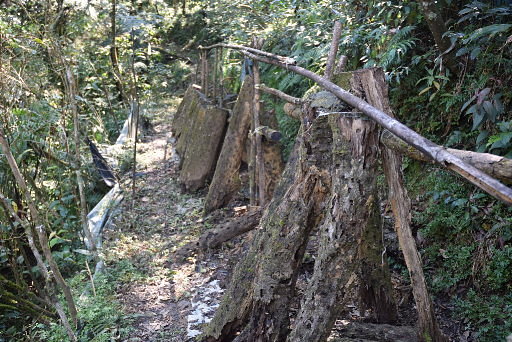 山字水泥柱,位於古道越過一條支稜處,古道續腰繞而行。H531m |