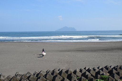 續行,走濱海公路太無趣,穿越台2上海堤,堤上步道可賞外澳沙灘海景。 |