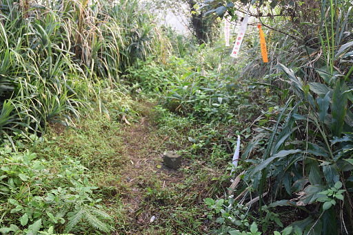 續行,有另一條路可下東明路55巷,廟的左右兩側則有步道分別上稜或鑽過稜線,取左上稜。 |