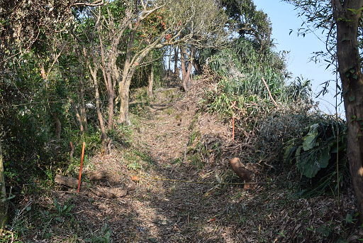 森林早起會叉路口小丘,有舊步道登頂,無所獲。 |