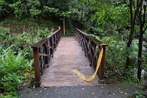主線步道叉路,左往峽谷、土地公,右往大菁農場,叉路口附近有座水泥橋,橋上休息。H194m |