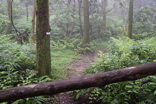 百年柳杉。續行的山路雖新整闢過,但較陡峭崎嶇又迂迴。H529m |
