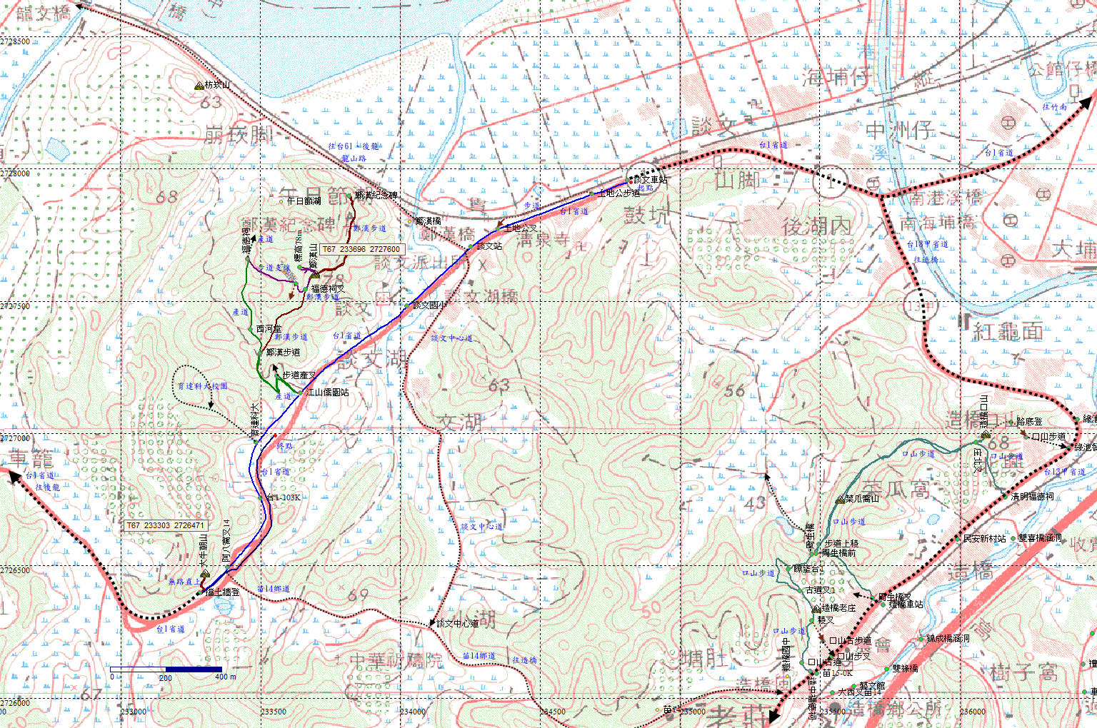 回到大牛朝山登山口,稍整裝後,退往育達科大站牌搭公車,發現有輛5807A(後龍→高鐵苗栗站→頭份→新竹)公車即將到達,結過匆忙間搭上了高鐵接駁車101A(高鐵苗栗站→竹南科學園區),而談文火車站並沒設站,司機好心,還是讓我在火車站下車。其實就直接搭到竹南火車站也行。H52m |
