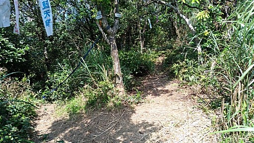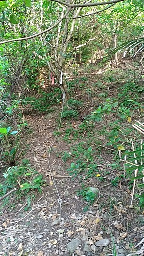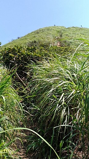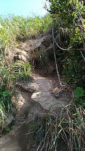 續行,芒草山路往鶯歌石山。接近鶯歌石山時,山路攀繩急陡上。 |