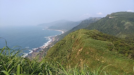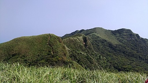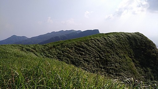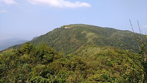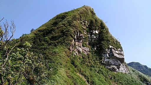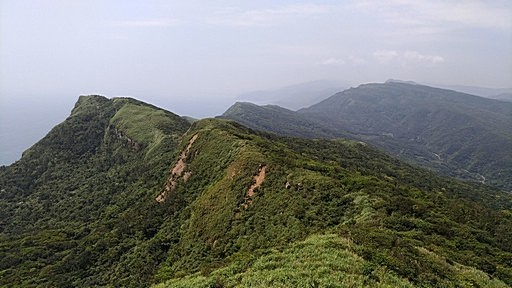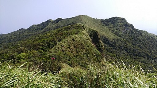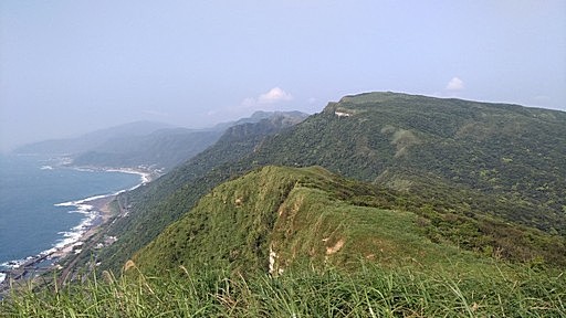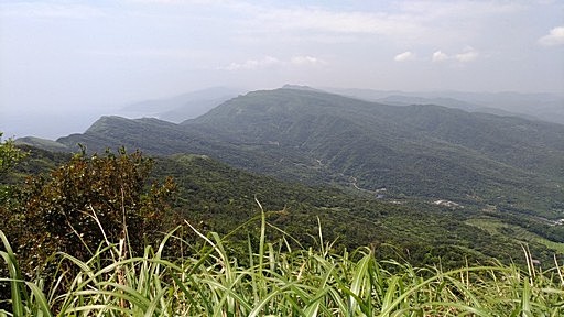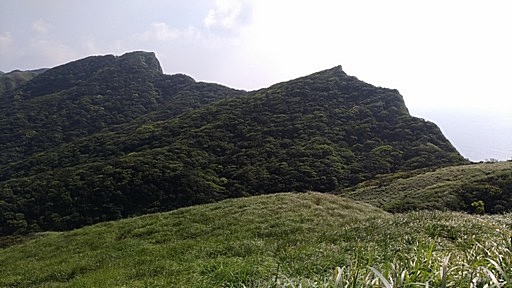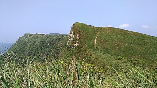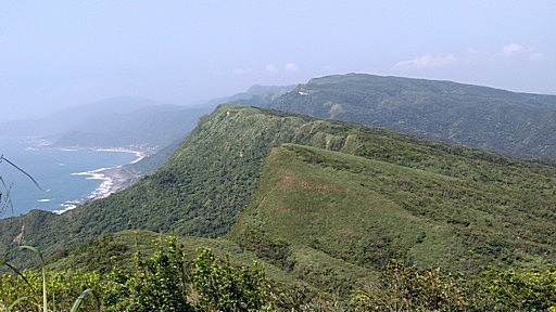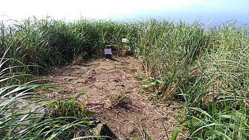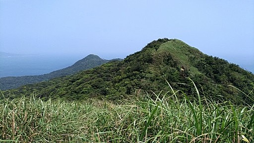 田寮洋山,340m,山字水泥柱(找不到)。這座尖峰滿佈芒草,以前的山頂標示牌並非掛在此處。展望頗佳,可俯瞰大堀澳海岸,眺望鶯歌石山、大堀澳山、石城山,遠眺福隆、澳底。山路從窄稜下方幾公尺經過,稜線芒草區中搜尋山字水泥柱,無所獲。H337m |
